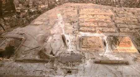 View from the top of the Great Pyramid showing the site of Hetepheres tomb, alongside Khufu's Causeway